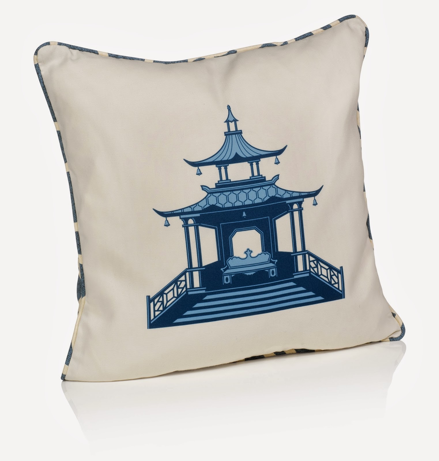 The maker of some of my most favorite candles in the world. (imagine an Oprah voice saying that)! Their scents are totally sublime, the packaging so decadent and gorgeous that sometimes it feels just wrong to open them! I have been a long time fan of Seda France so was over the moon when I found out that they are expanding into all kinds of new territory. I flipped over the new addition of their spectacular new chinoiserie pillows...come to mama! They just introduced a fabulous pillow line. Filled with feather down, they measure 19" x 19" and feature a traditional pagoda design on one side and classic fretwork on the reverse...brilliant!